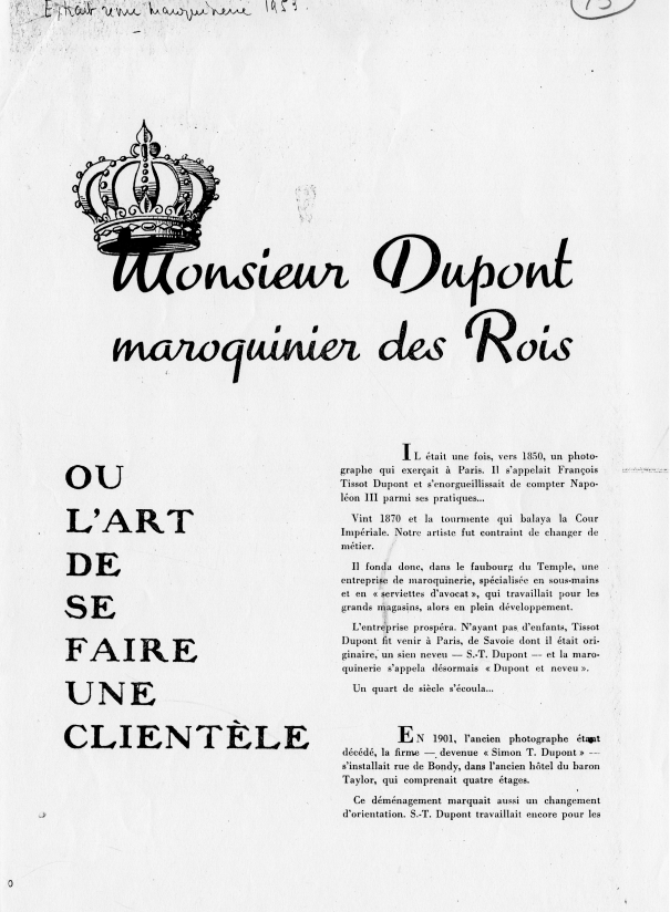 As Napoleon III’s photographer and a pioneering spirit with a keen eye for aesthetics, in 1872, aged just 25, Simon Tissot Dupont opened his first leatherwork shop in Paris. His personalised travel trunks soon became the ultimate accessory for Europe’s elite. The leading shops of the late nineteenth century, such as the Grand Magasins du Louvre, selected him as a supplier, and personalities such as Eugénie de Montijo ordered her vanity case from Dupont.